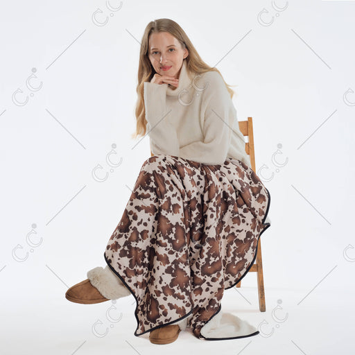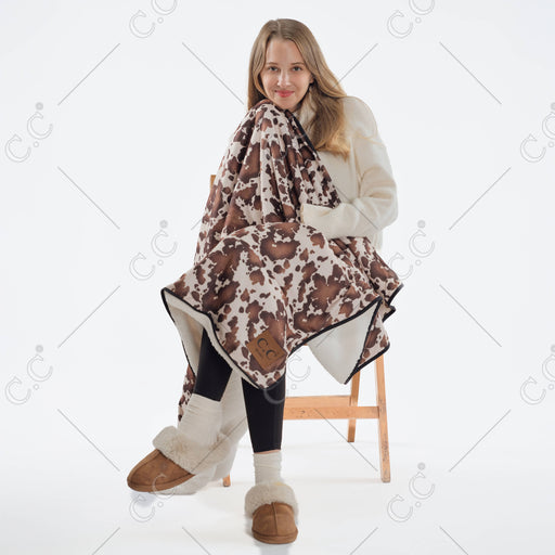 COW PRINT PATTERN THROW BLANKET WITH SHERPA FABRIC Content: 100%POLYESTER Size: 50"(W) × 60”(L)