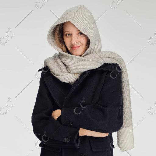 STRIPE RIB HOODED SCARF Content:  53% Acrylic 35% Nylon  12% Polyester Size: 80"(H) X 12" (W)