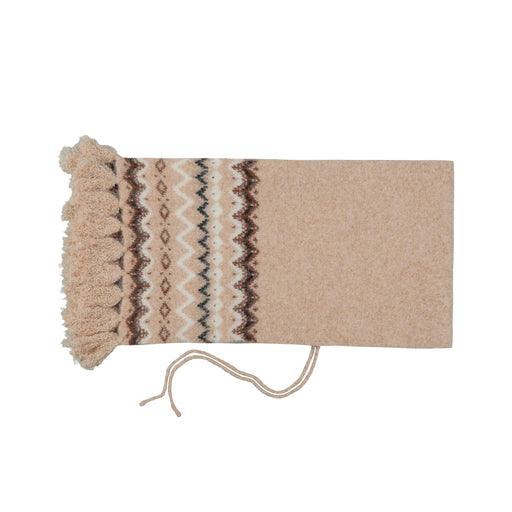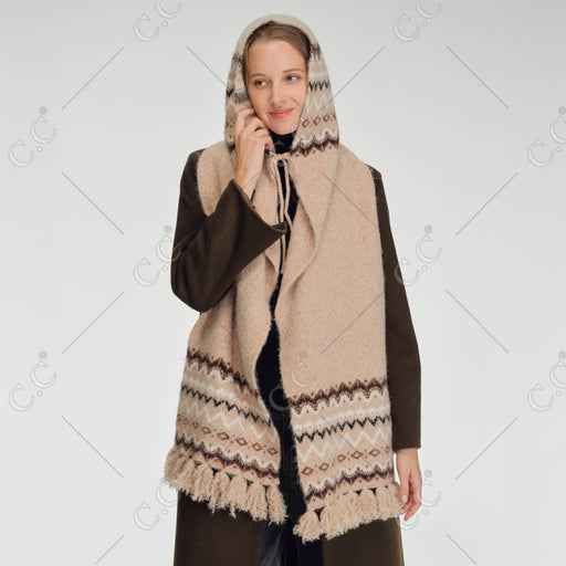 FAIR ISLE PATTERN HOODED SCARF Content:  50% RECYCLED POLYESTER 30% ACRYLIC  10% NYLON 5% WOOL 5% SPANDEX Size: 42"(H) X 12" (W) + 3"