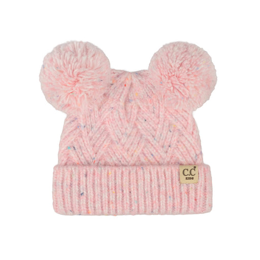Solid Color BEANIE HAT FOR KIDS WITH FAUX FUR DOUBLE POM Content: 75% Acrylic 25% Nylon Size: One size