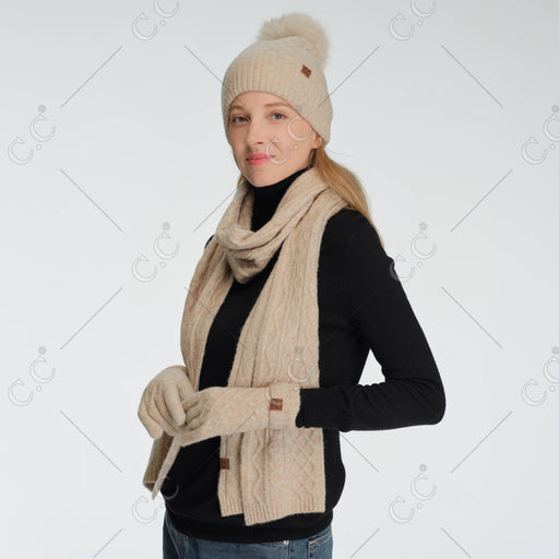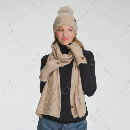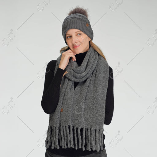 CABLE KNIT SCARF Content:  50% RECYCLED POLYESTER 25% ACRYLIC  15% NYLON 6% WOOL 4% SPANDEX Size: 11"(W) × 74"(L)