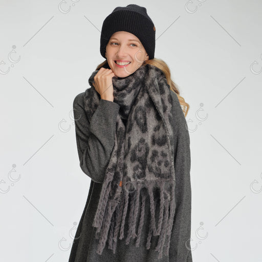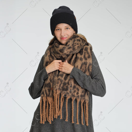 WOVEN LEOPARD PRINT SCARF Content:  100% POLYESTER Size:  73"(L) X 16"(W) + 7.5"(FRINGE) 88" (TOTAL LENGTH)